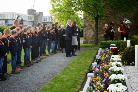 Tijdens de dodenherdenking 2014 mocht onze Scoutinggroep alweer voor de zevende keer de erehaag vormen op de begraafplaats bij de oorlogsgraven. We verzamelden om 19.00u bij het gemeentehuis waar wij het begin van de publieke stoet vormden, net achter de genodigden en bobo's dus.